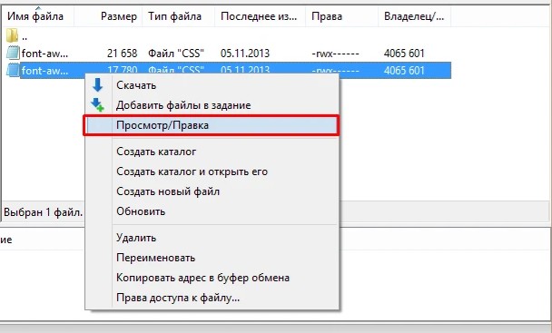 FileZilla предоставляет возможность изменять либо редактировать файлы, которые при этом будут загружены во временную папку. К примеру, если вы захотите открыть определенный html-файл, внести в него правки и снова сохранить на сервере. Выберите нужный файл, нажмите на него правой кнопкой мыши и кликните в меню на пункт «Просмотр/Правка». После этого документ загрузится и откроется в подходящем редакторе. При этом по умолчанию клиент использует системные ассоциации – то есть, например, изображения откроются в программе, применяемой на компьютере для просмотра изображений.